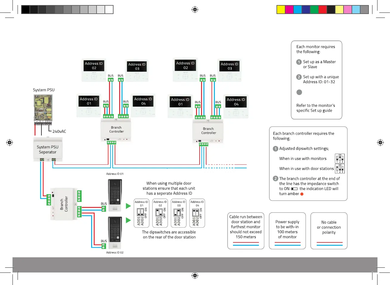 ESP Aperta APDSPXMW - Door Station Wiring Example 2; Multi-Apartment Wiring Configuration; Branch Controller Settings; Door Station Address ID Assignment