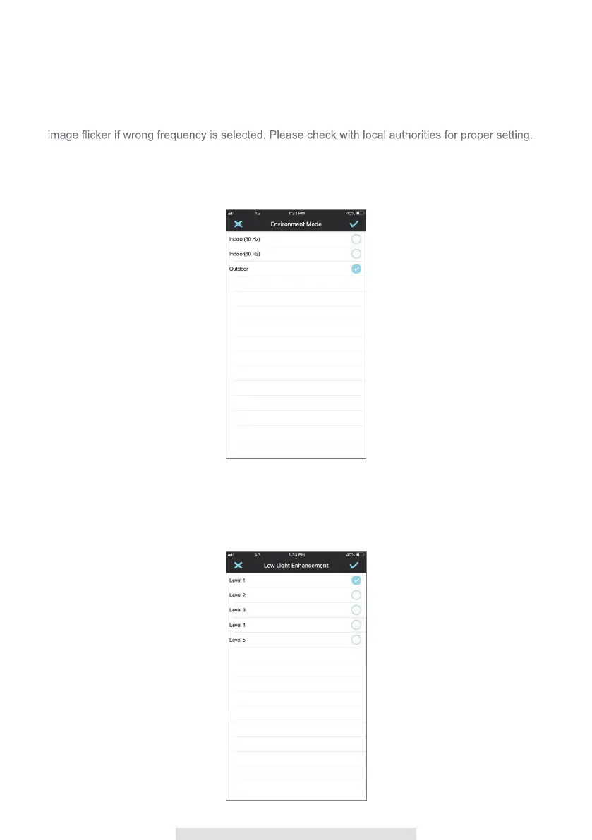 The Environment Mode settings allows you to select the power line frequency used at the location