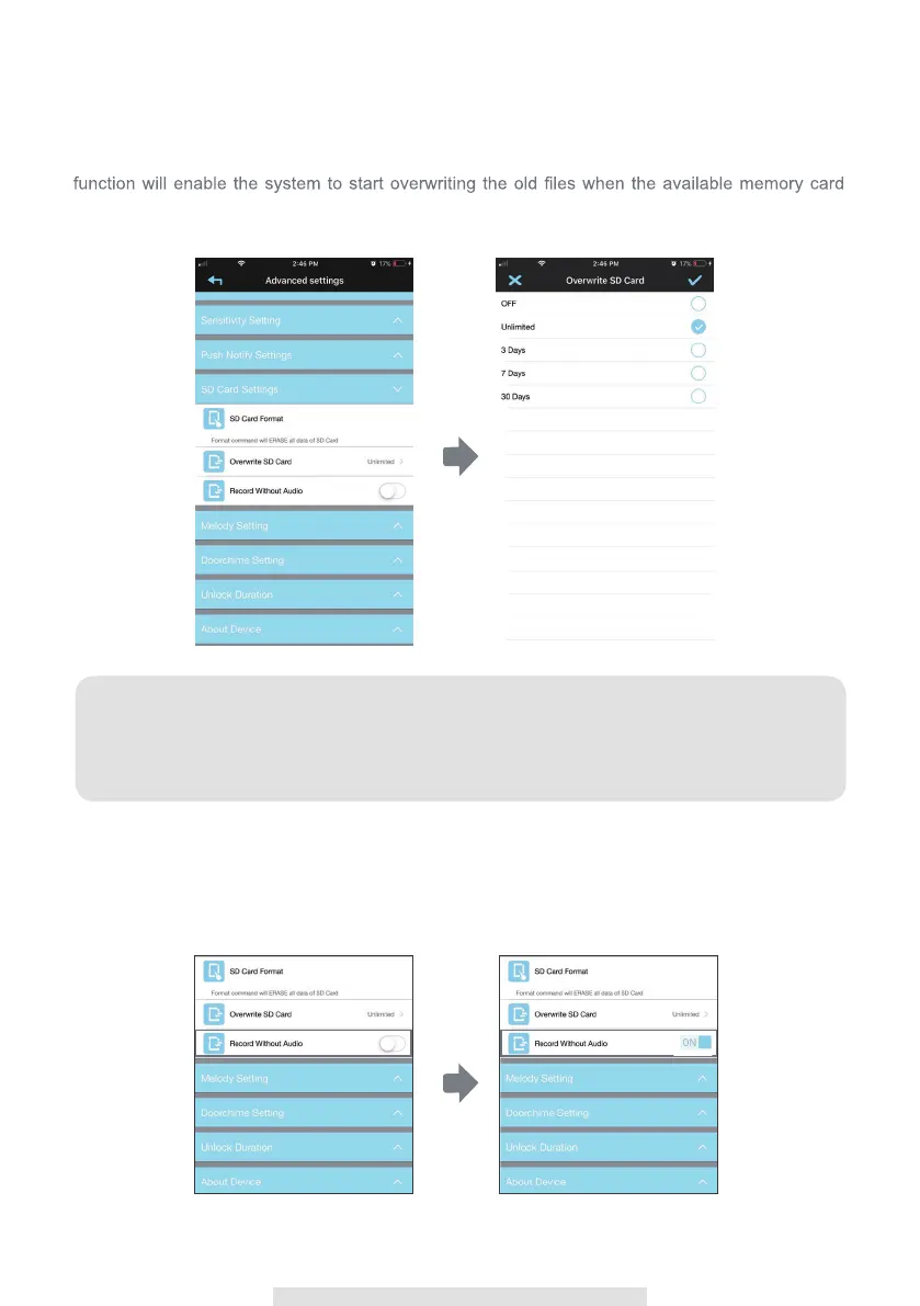 This function will overwrite the oldest files when the micro memory card is full. Turning on this