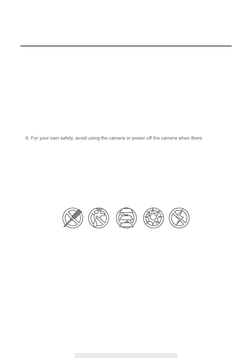 1. Do not drop, puncture or disassemble the camera; otherwise the warranty will be
