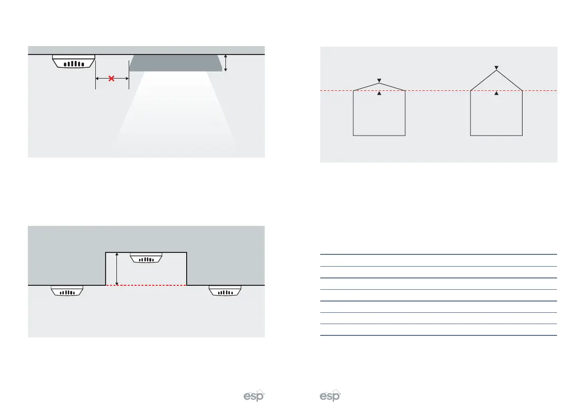 Never mount devices closer than twice the depth of light fittings.