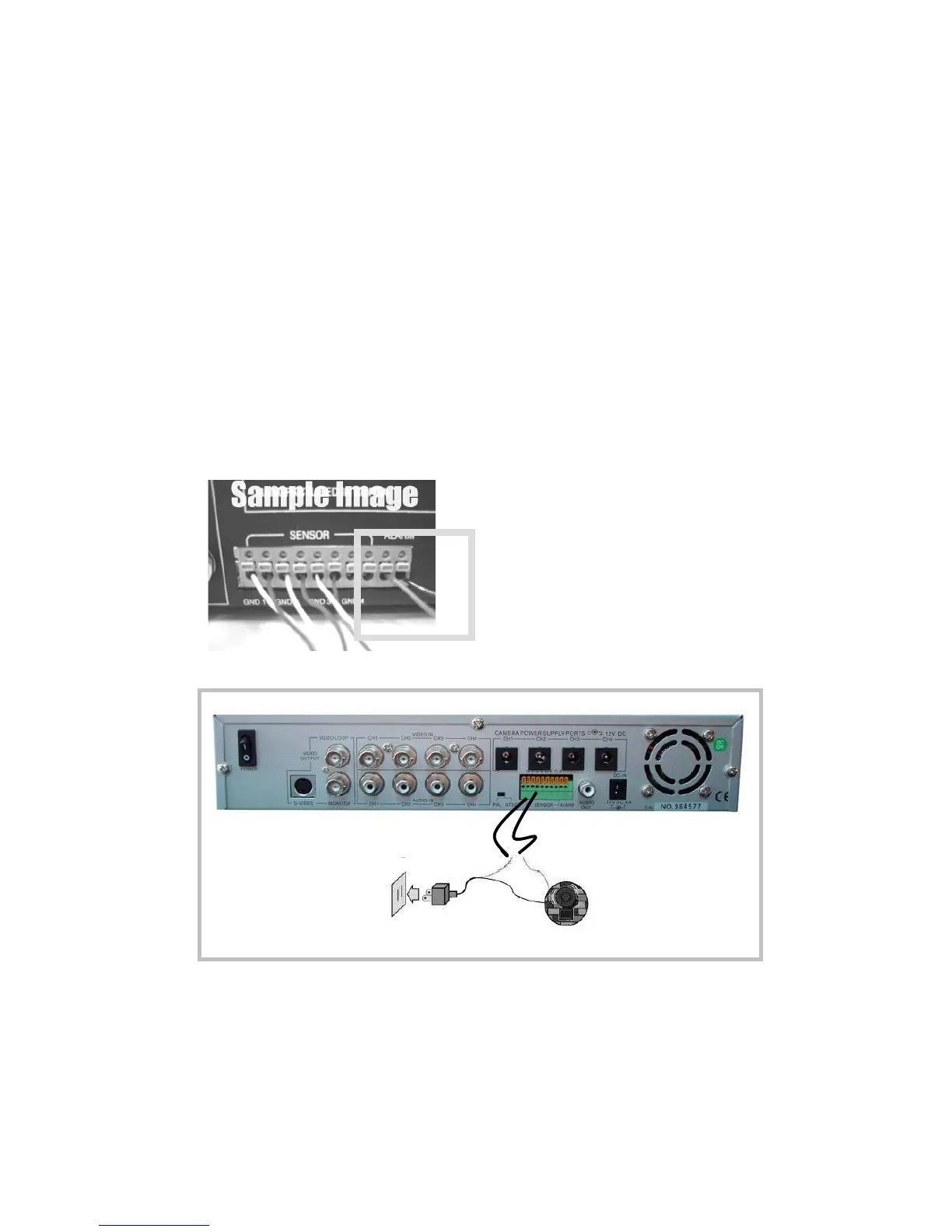 II.Connect the alarm power line to the alarm switch terminal on the rear of the DVR.