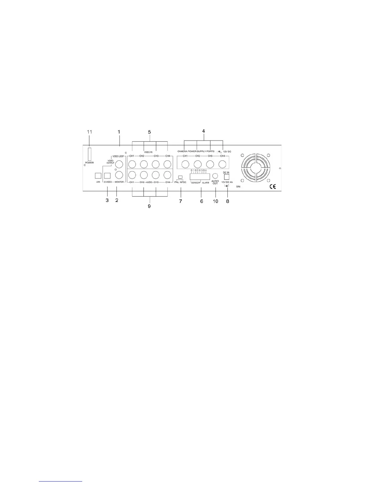 8. DVR Power In (DC- in, 12 volts, 4.0A)