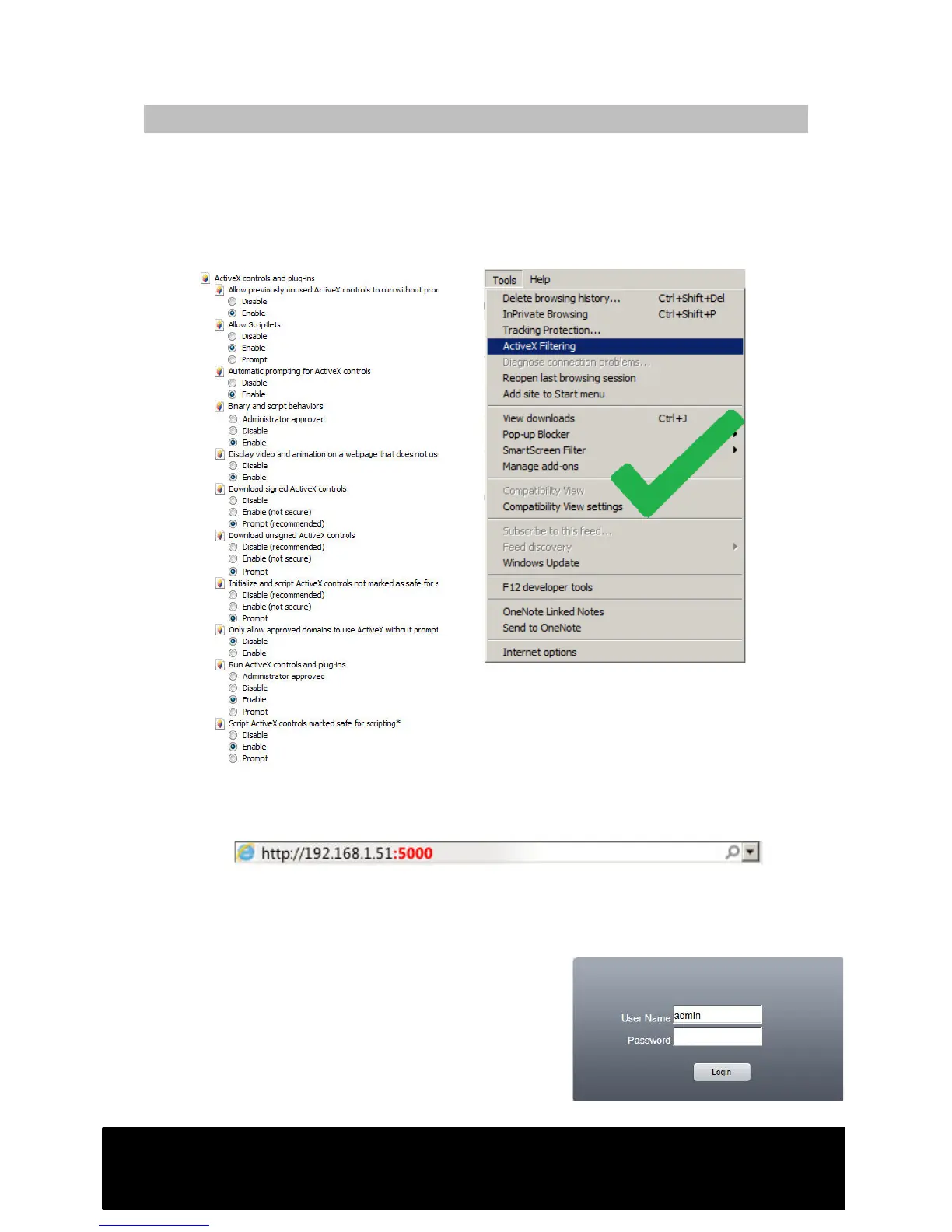 4. Disable/de-select ActiveX Filtering from the “Tools” menu as shown above.