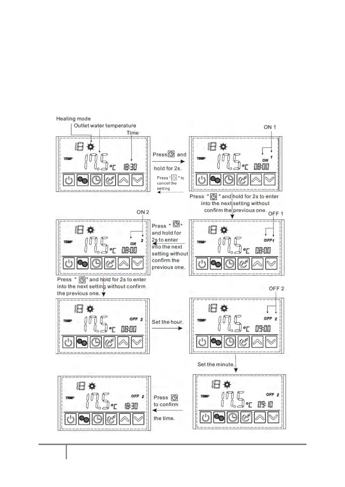 default screen and the settings will not be saved. . To cancel the timers, press the on/off button for 2 Secs. Press