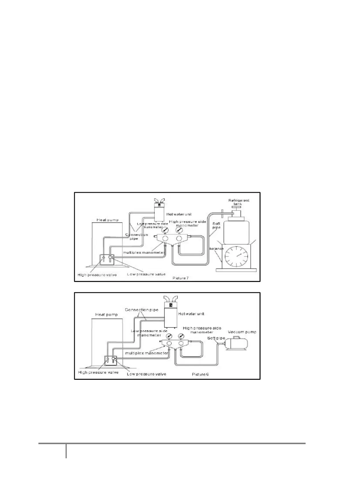 A. Unscrew the screw cap of the high pressure valve on the heat pump, and connect the multiplex