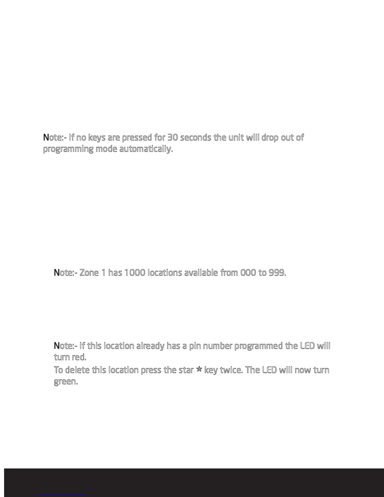 Select the lock release times (00-99 seconds) zone 1 and zone 2.