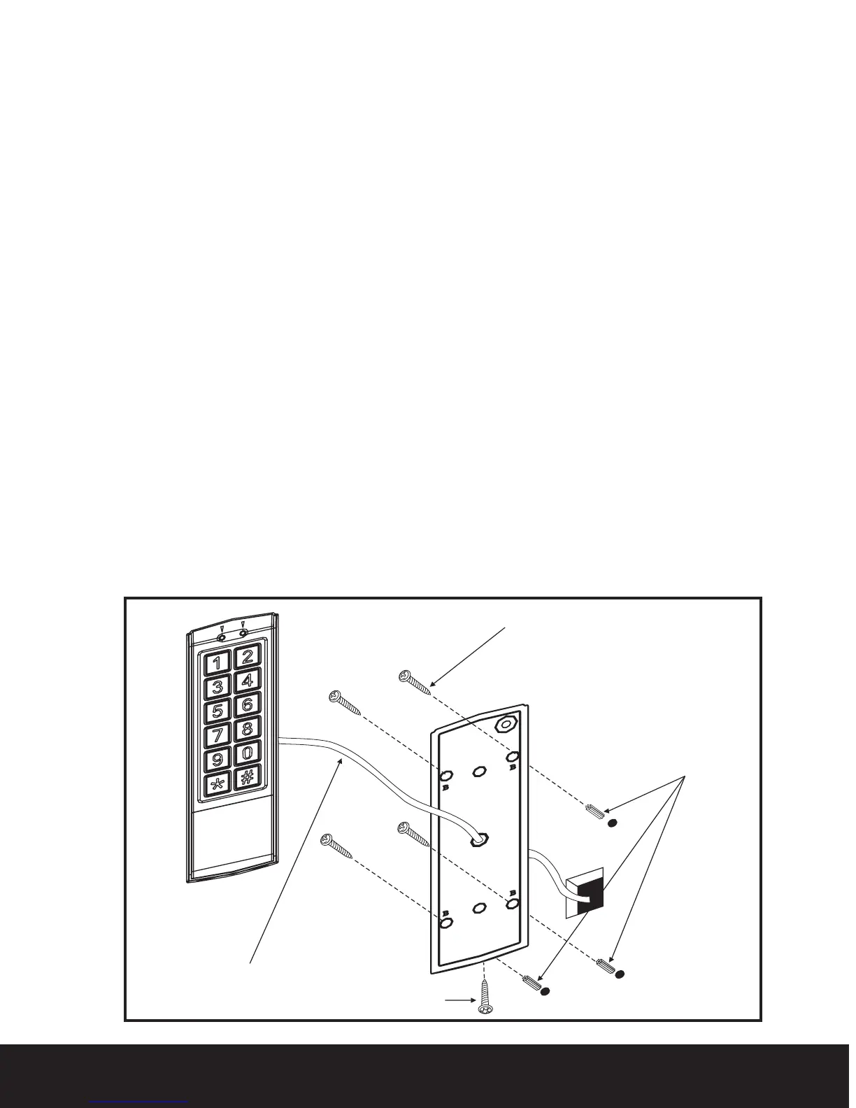 Make all wiring connections and connect 12 volts DC to the keypad/reader.