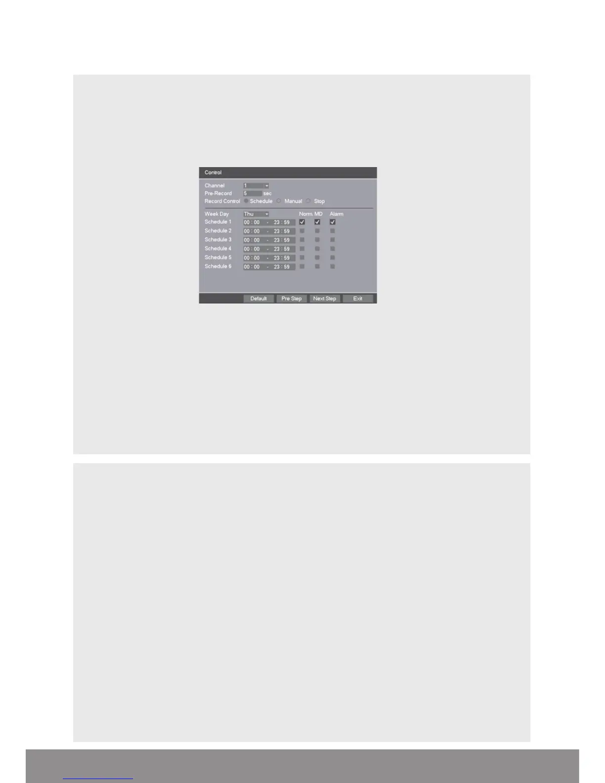 NB. When entering the ‘Record > Control’ menu the default screen will always start with a