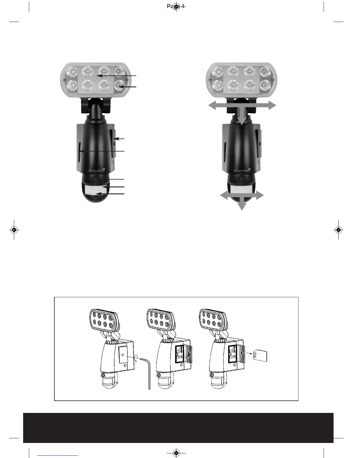 Unscrew the waterproofed cover using provided Allen key, then insert the SD card