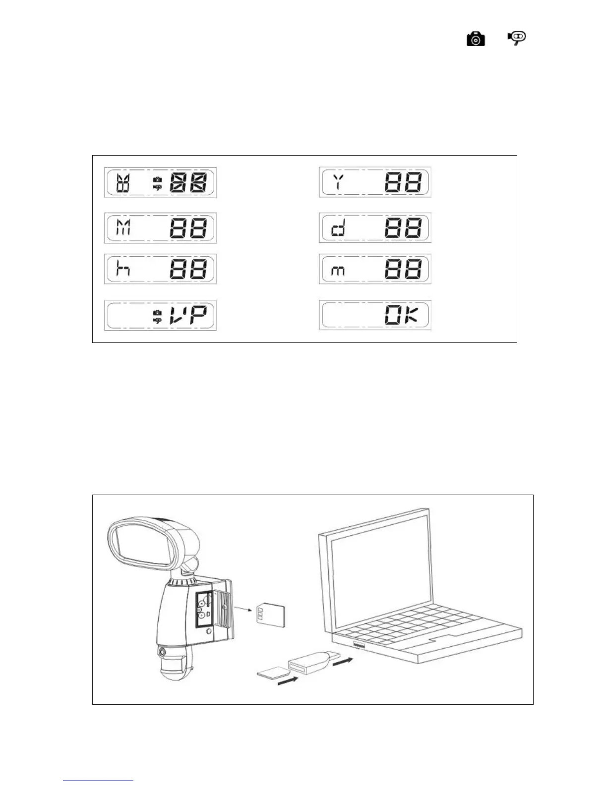 “V” appear on the screen;push the button to choose ”V” (Video)or ”P” (Photo).