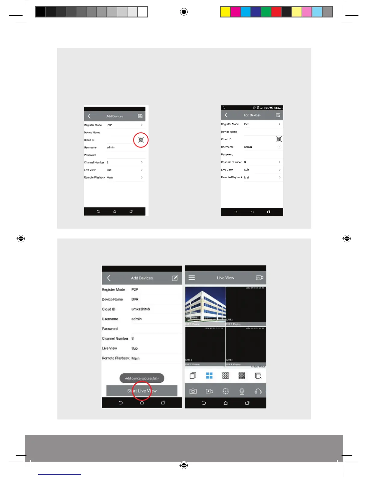 Enter Cloud ID: select the QR code icon and scan the Cloud ID from the P2P