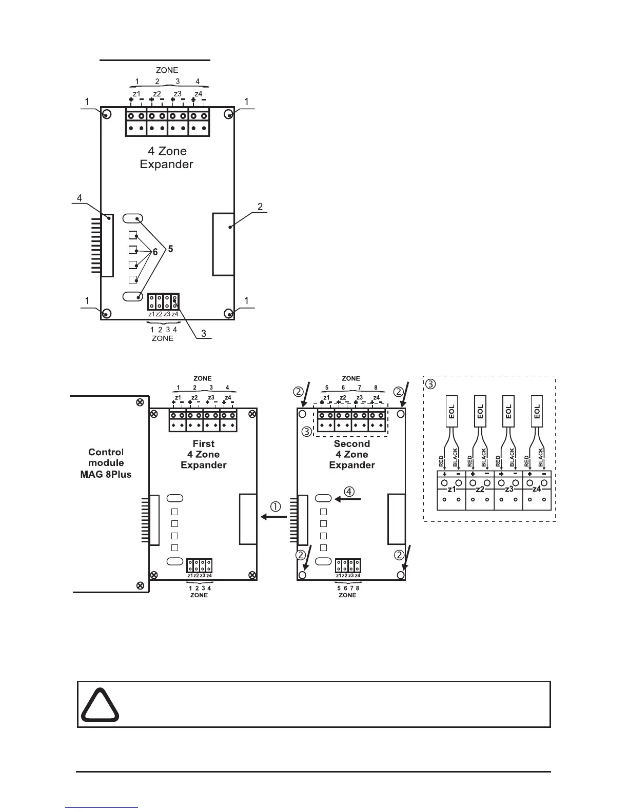 • 2 - Fix the second 4-zone expander with screws from the spare parts kit