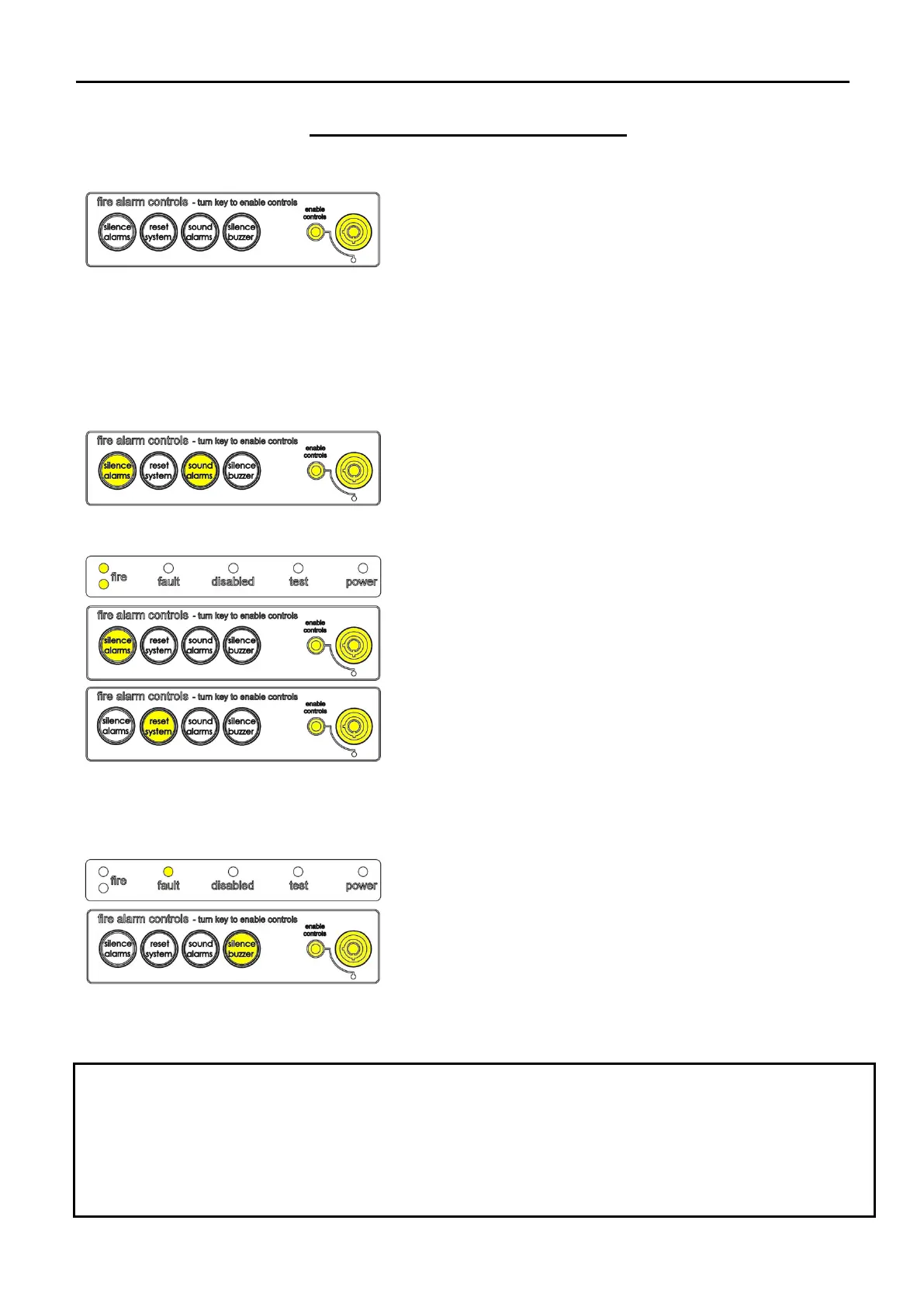 To disable the control panel keys, turn the key switch off. When disabled, the ‘Controls Enabled’ LED should
