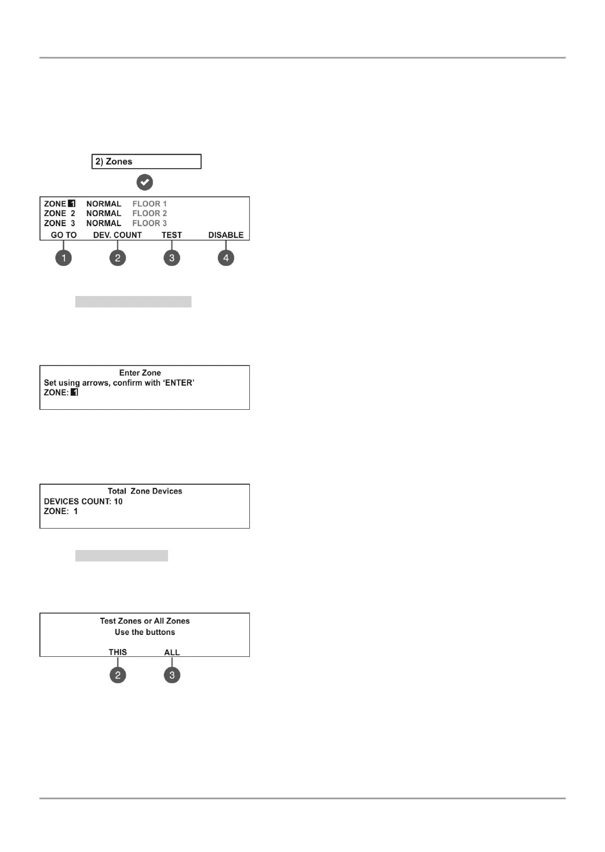 respective zone. From the main screen of ZONES menu select a zone number and press button (2). The