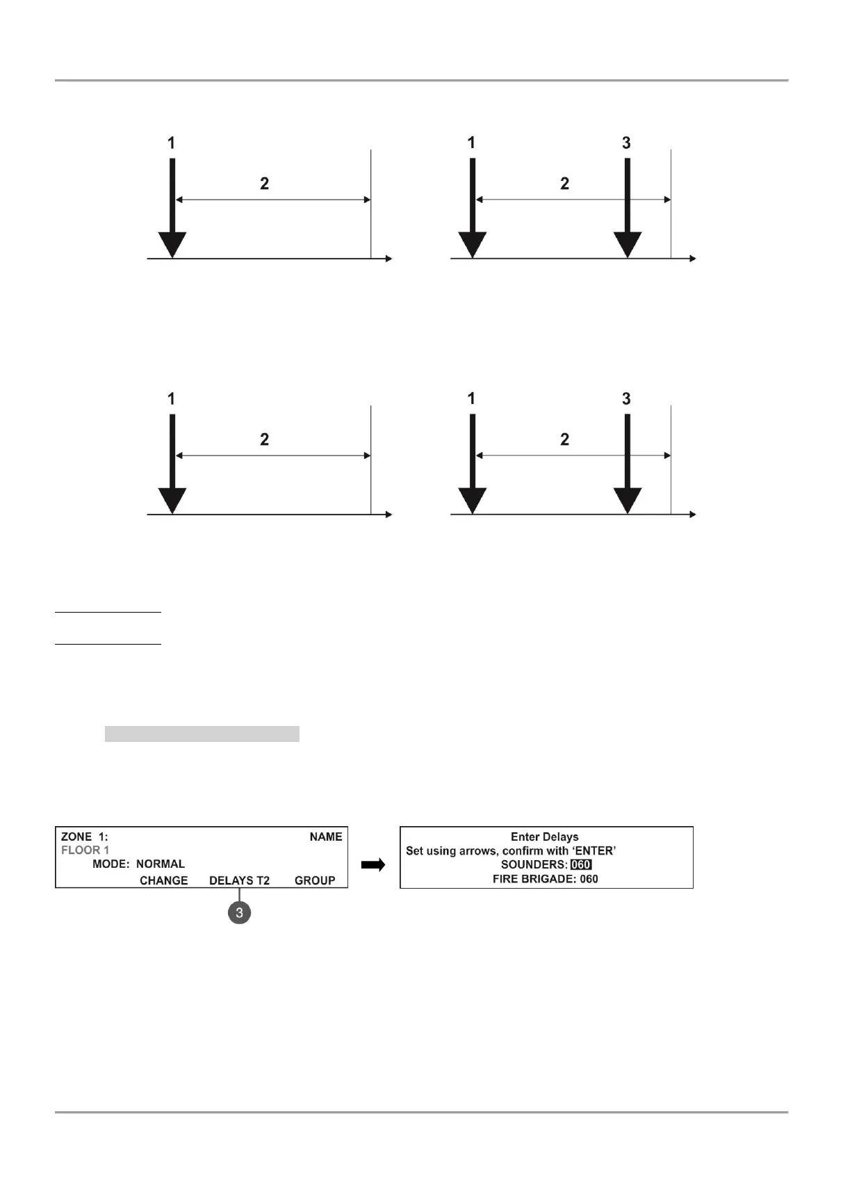 To enter in the submenu for DELAY Т2 setting, press button (3) DELAY T2 from the zone parameters programming