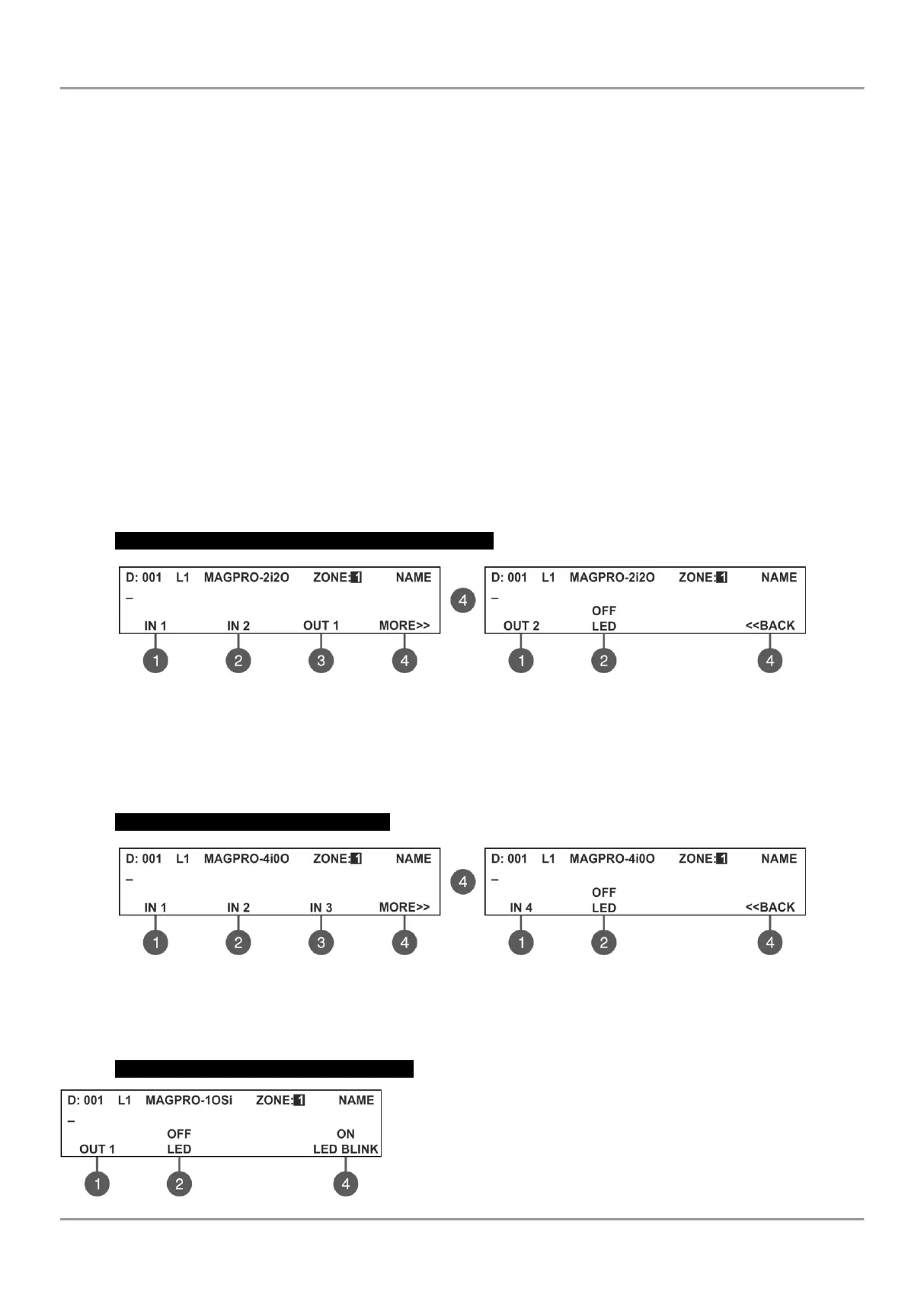 For the settings of the ‘IN 1/2/3/4’ refer to the submenu of MAGPRO-Mini.