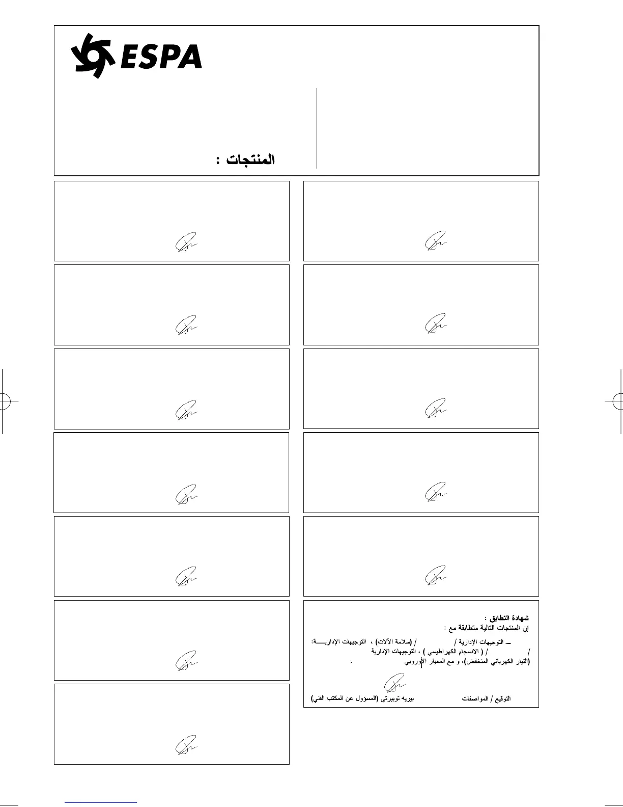 The products listed above are in compliance with: Directive 89/392/CEE