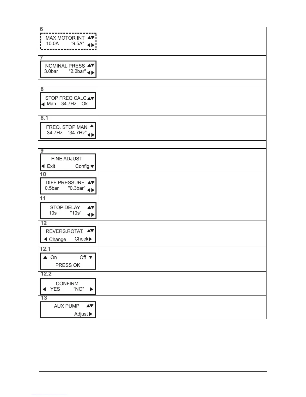 For adjust auxiliary pumps parameters, press ► (Adjust)