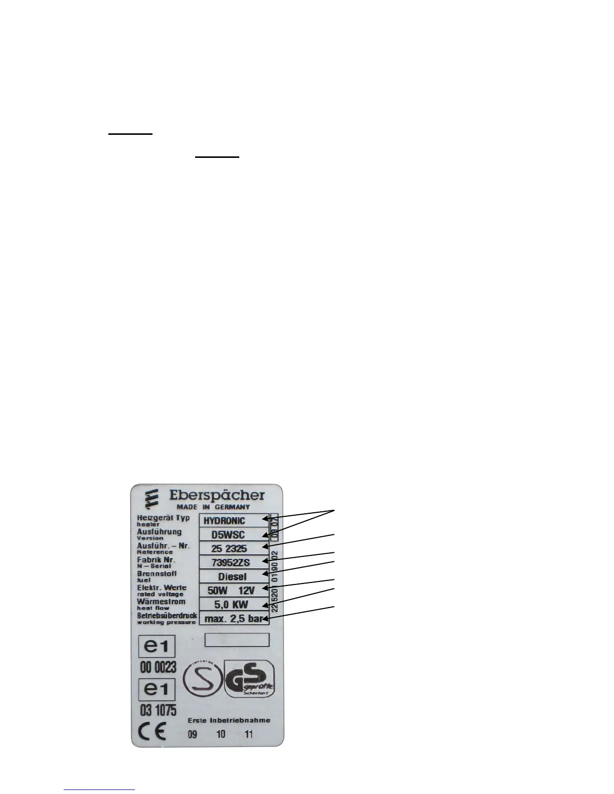 Heater Identification Plate