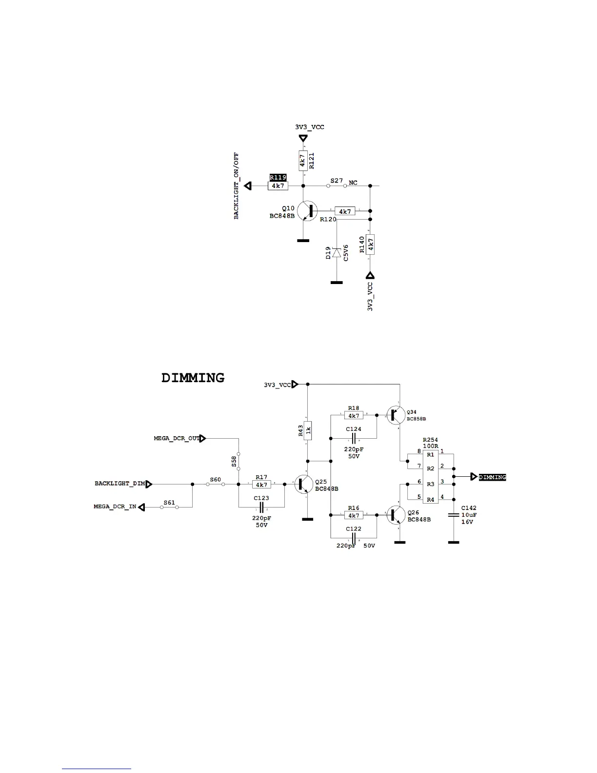 when the backlight is OFF. If it is a problem, please check Q10 and the panel cables. Also it