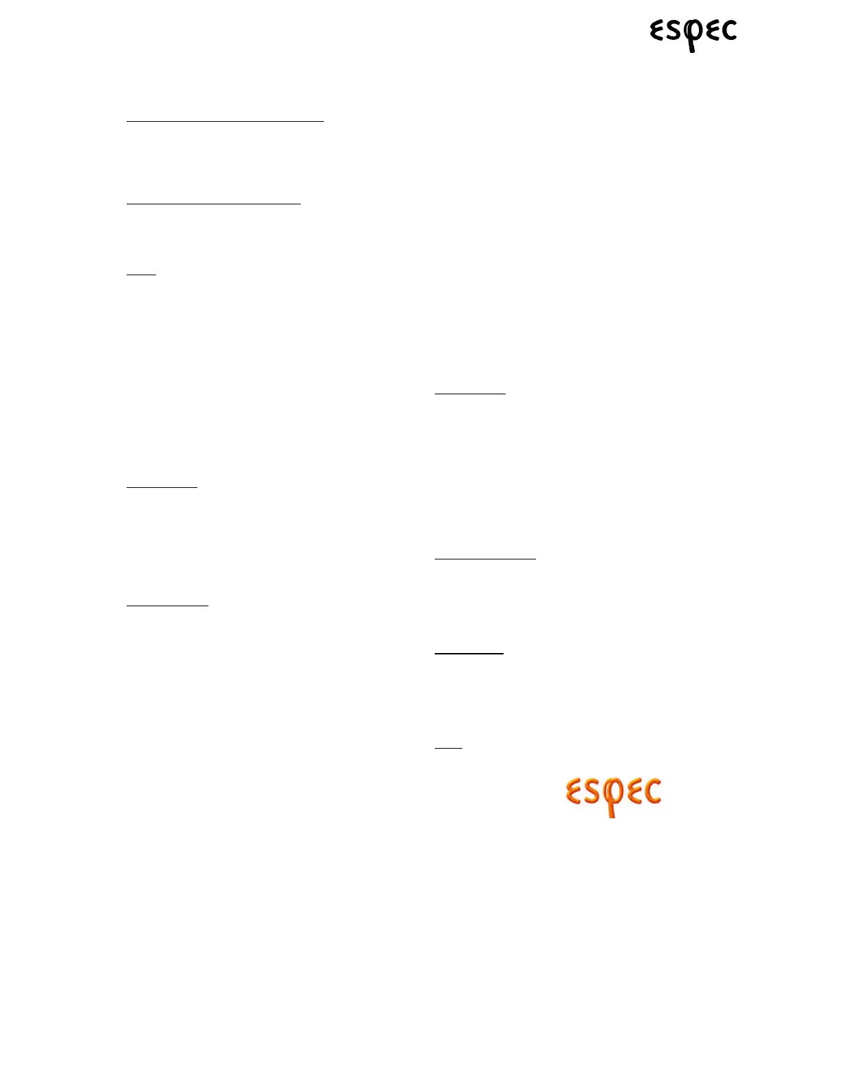 below, ESPEC warrants that the equipment manufactured by ESPEC is free