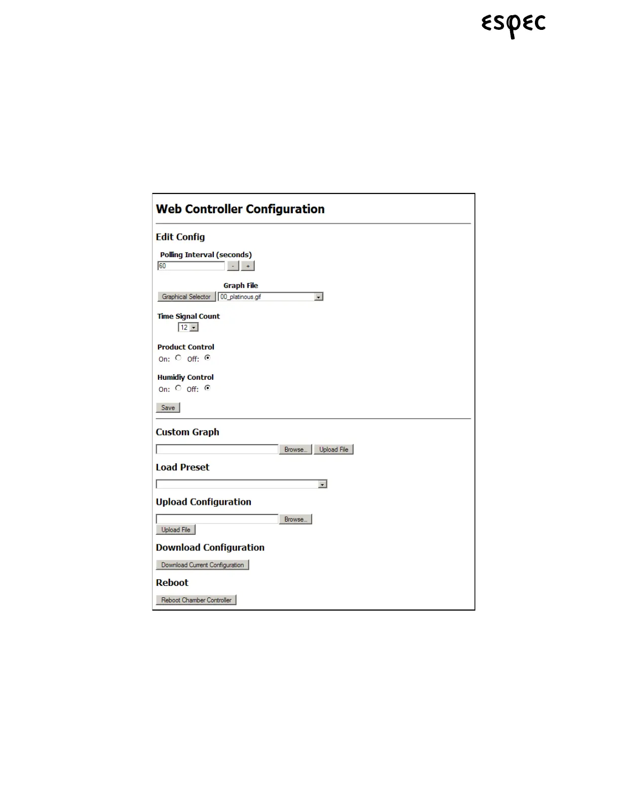 The web controller configuration screen is split into two main sections, as shown below. The top section of