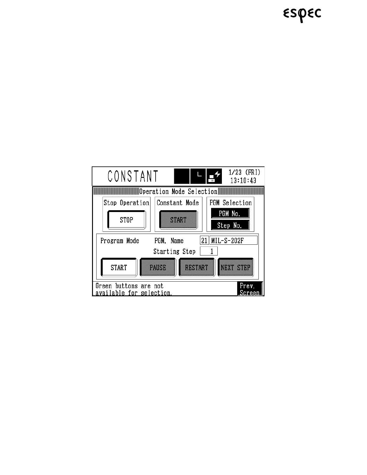 2. Get the Operation Mode Selection Screen. Press either the OPER./START key on the operating panel