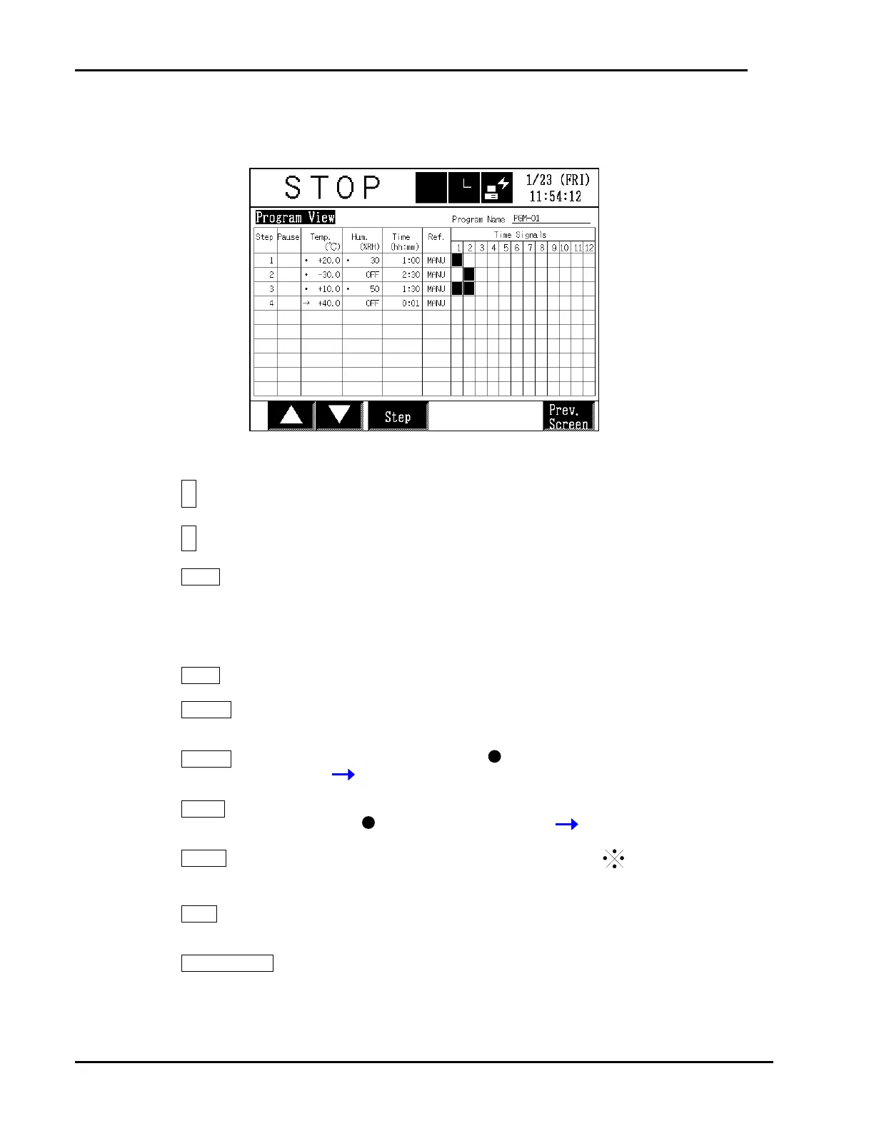 : Displays a keypad where to input the step number. That