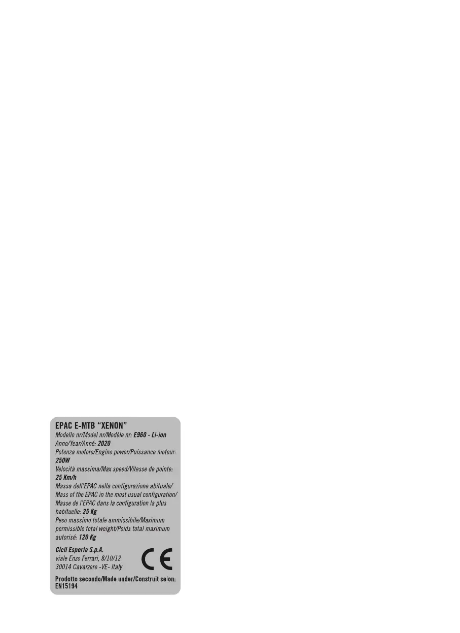 La bicicleta está dotada de una placa de identicación en la que guran los extremos