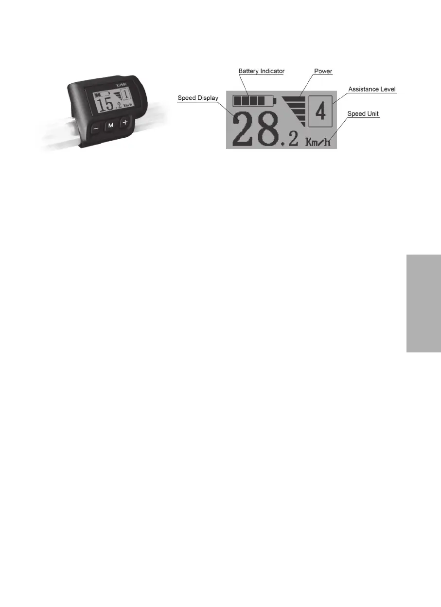 Press the “+” o “-” button to change the pedal assist motor power. The higher power