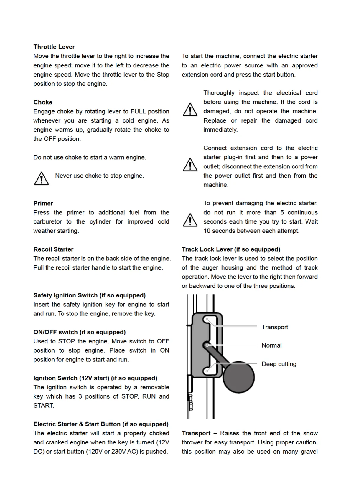 Espina XTP121 - Throttle Lever; Choke; Primer; Recoil Starter