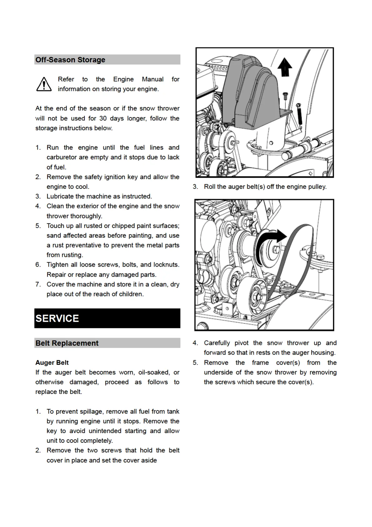 Espina XTP121 - Off-Season Storage; Belt Replacement; Auger Belt