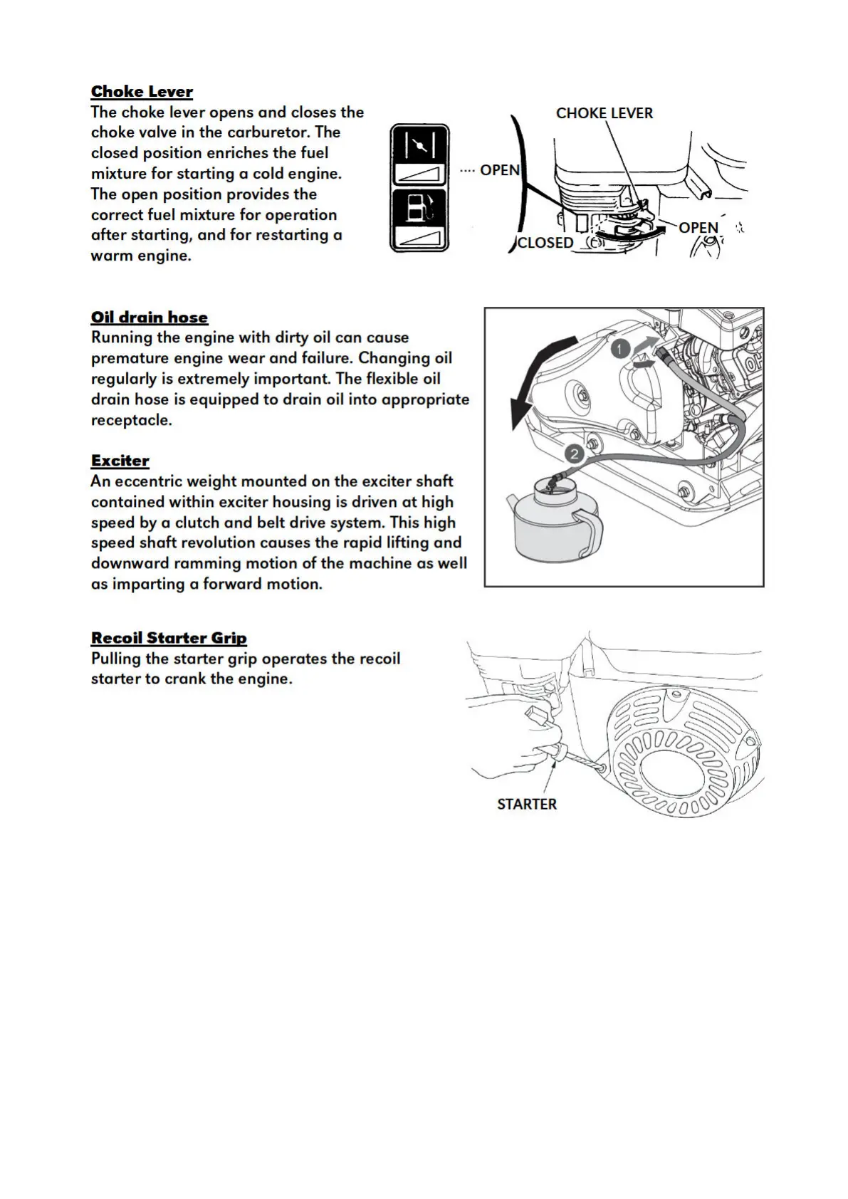 Espina XTP7 - Choke Lever; Oil Drain Hose; Exciter Mechanism; Recoil Starter Grip