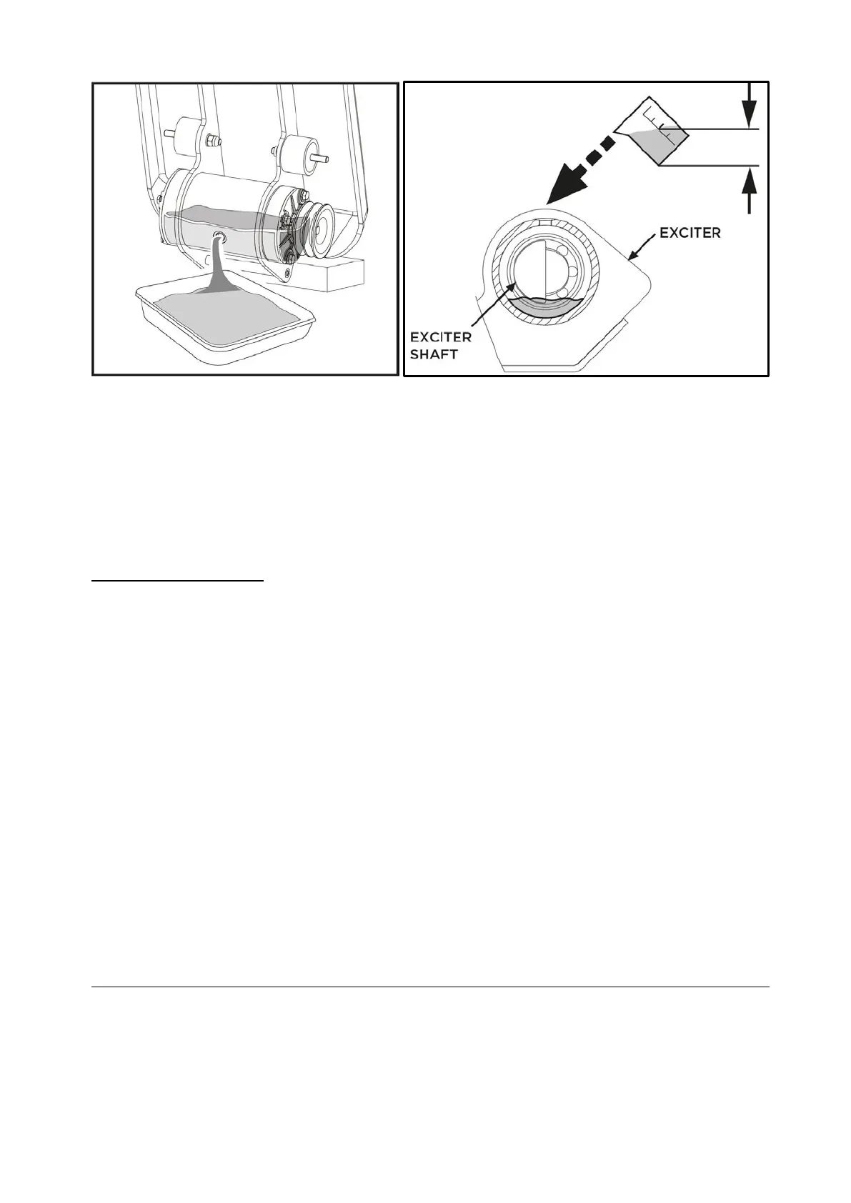 Do not overfill – overfilling can result in excessive temperatures in the exciter.