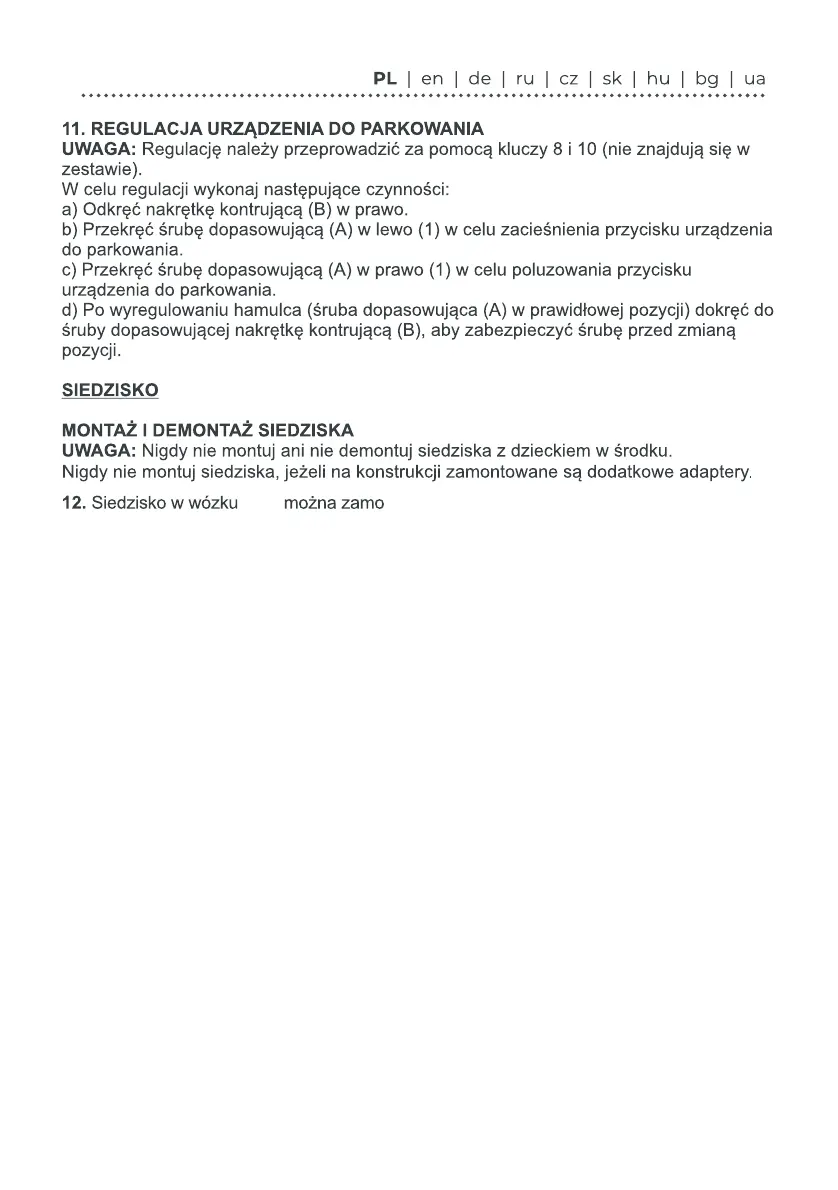 UWAGA: Upewnij się że siedzisko zostało prawidłowo zamocowane na stelażu wózka.