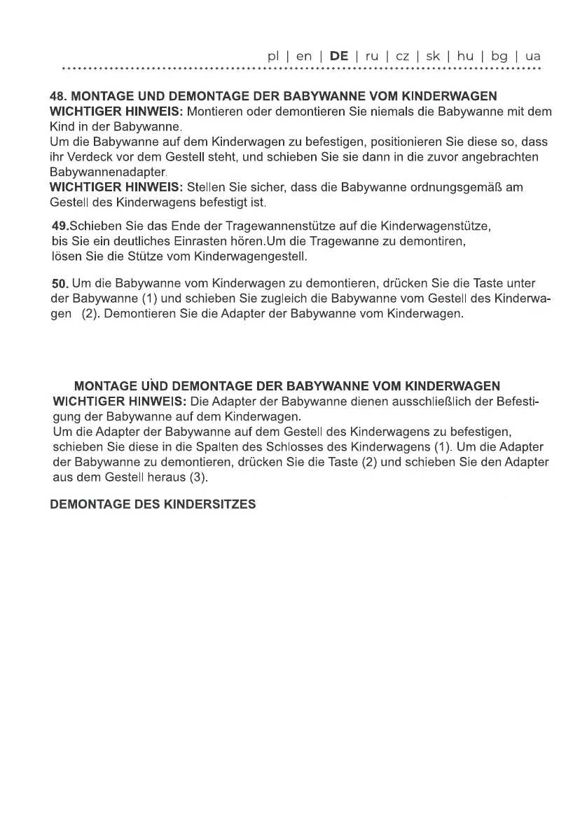 heraus (2). Demontieren Sie die Adapter der Babywanne vom Kinderwagen.
