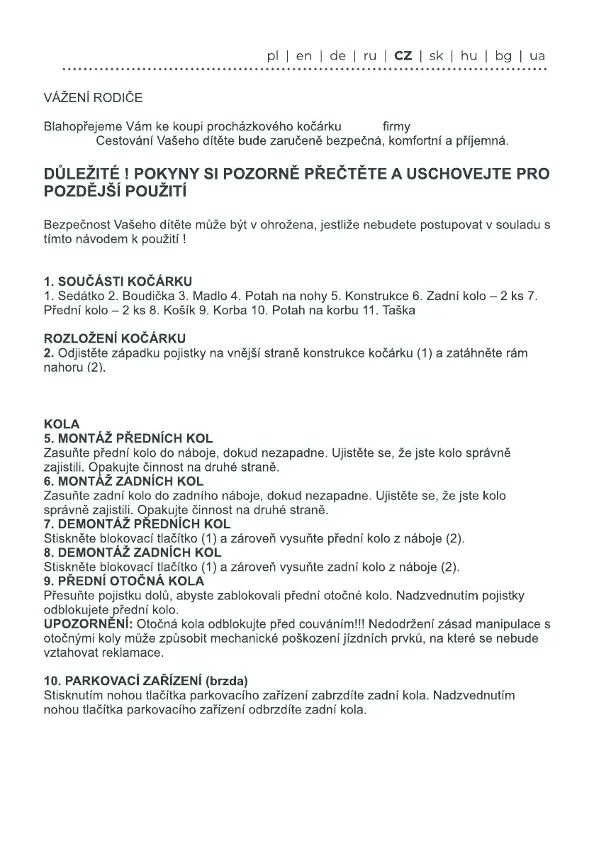4. Před prvním použitím zkontrolujte, zda jsou oba zámky správně zajištěny.