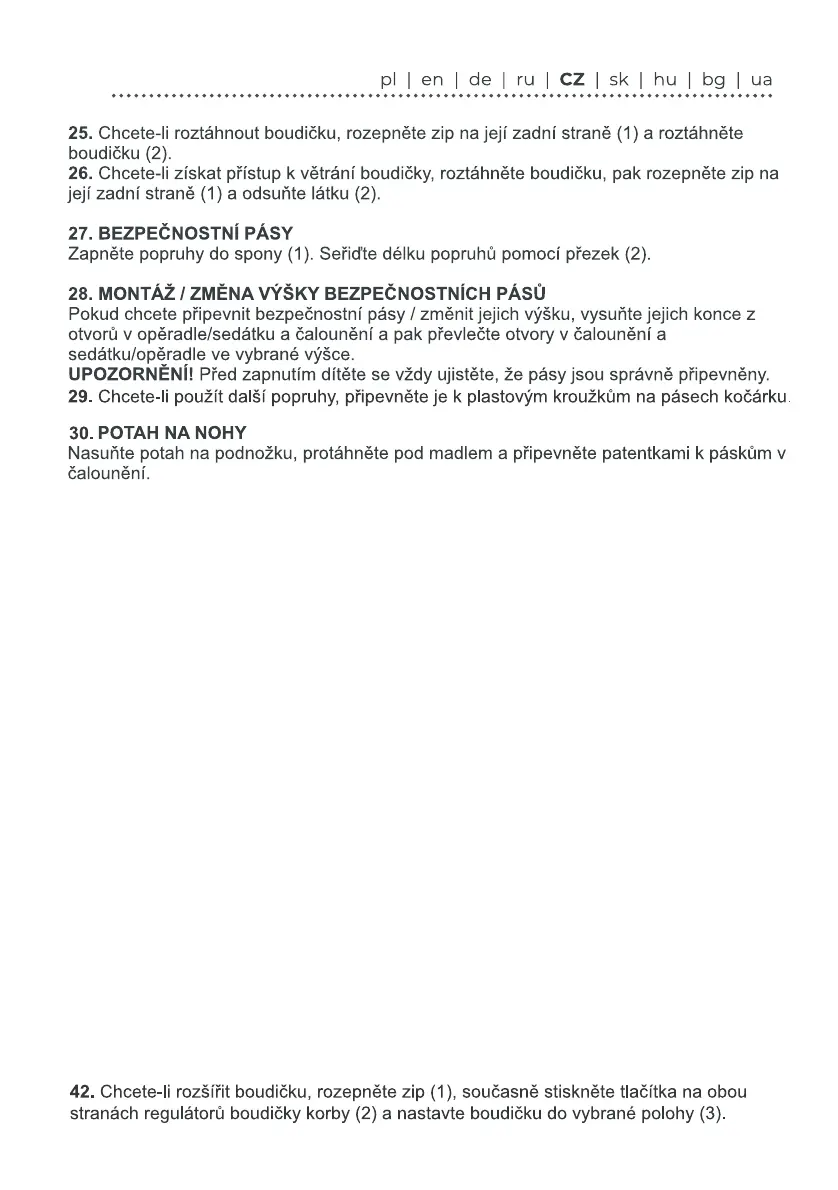 UPOZORNĚNÍ: Popruh má přezky, jejichž pomocí lze popruh odepnout z kočárku.