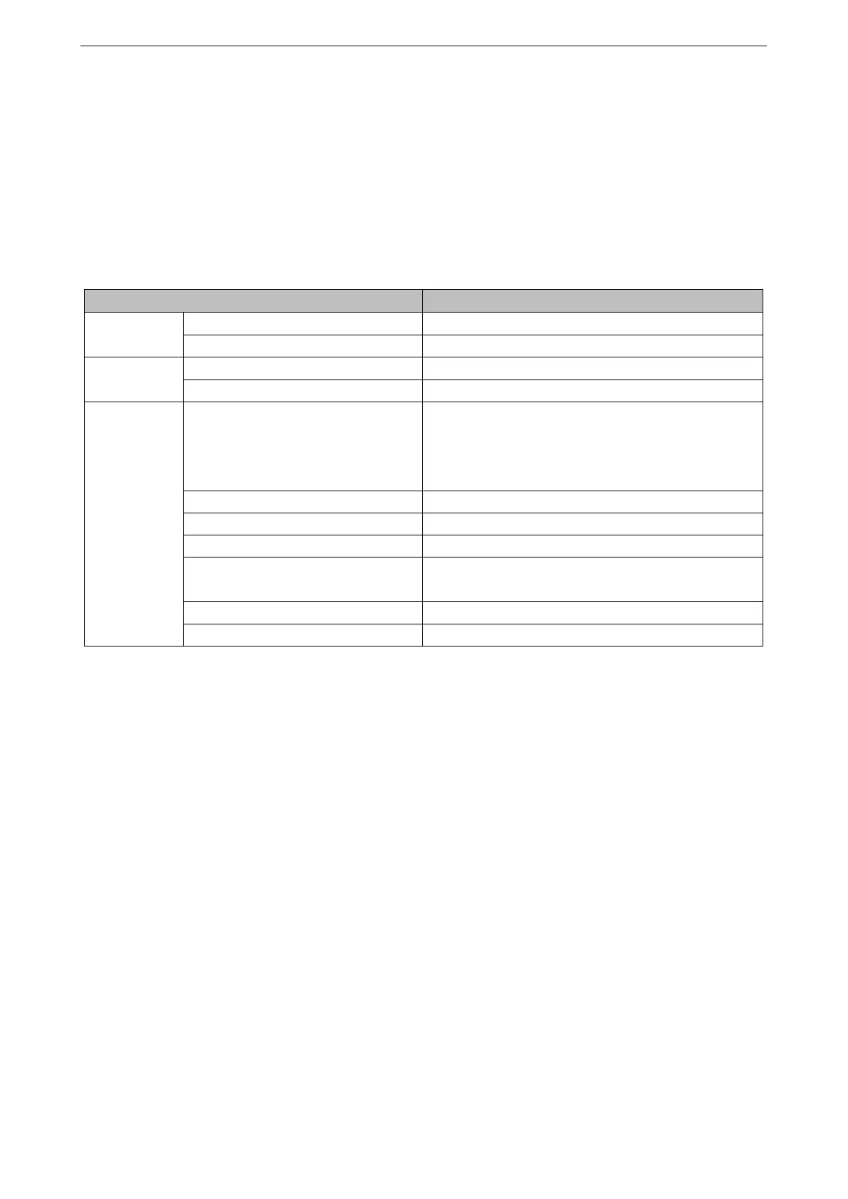 Categories Parameters Specifications