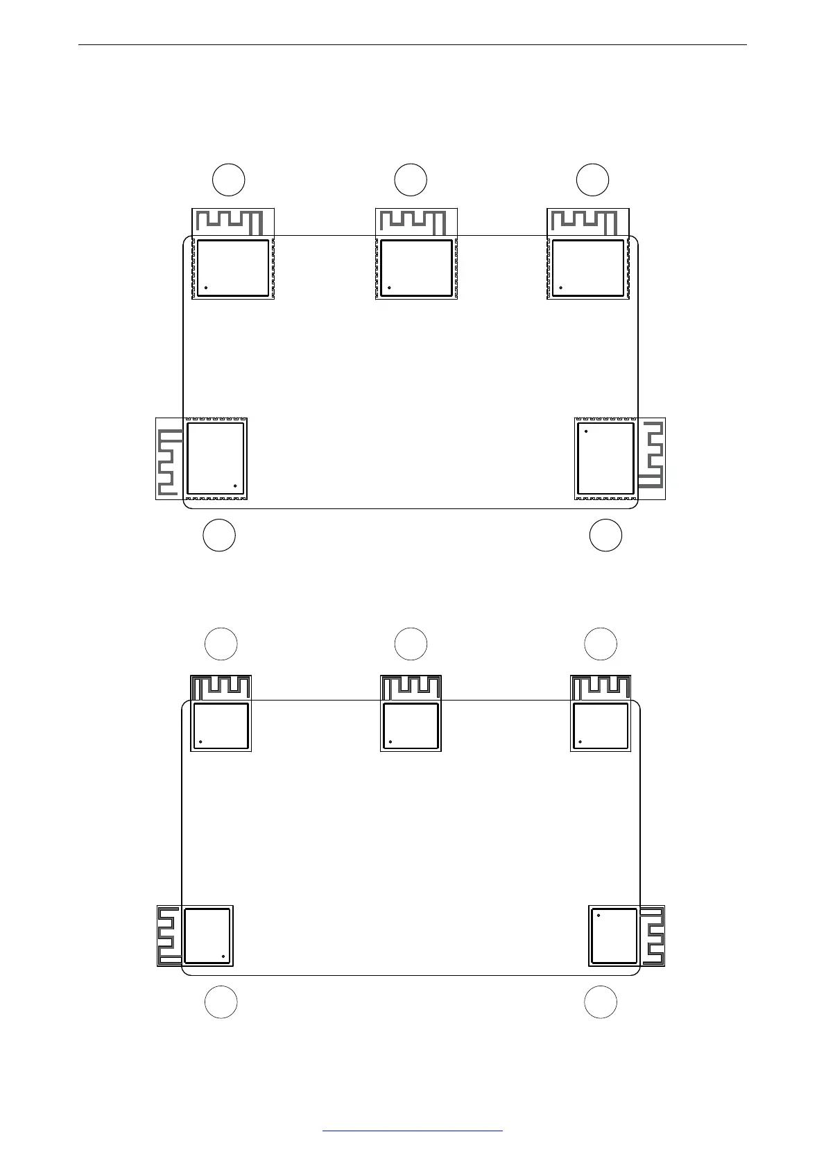 Figure 13: Placement of ESP32C3 Modules on Base Board. Antenna Feed Point on the Left