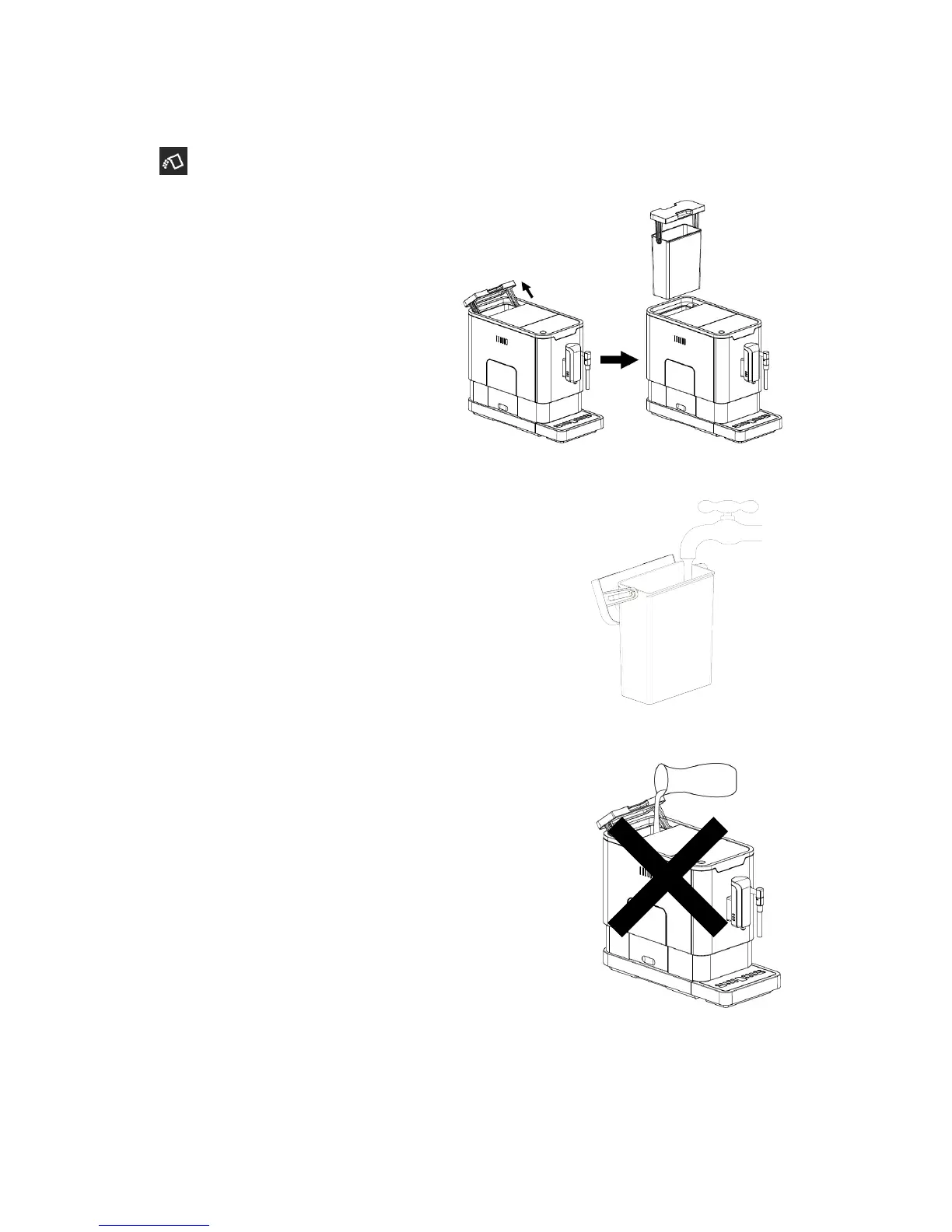 Note: To prevent overflow of water from the water tank, do not add water directly into