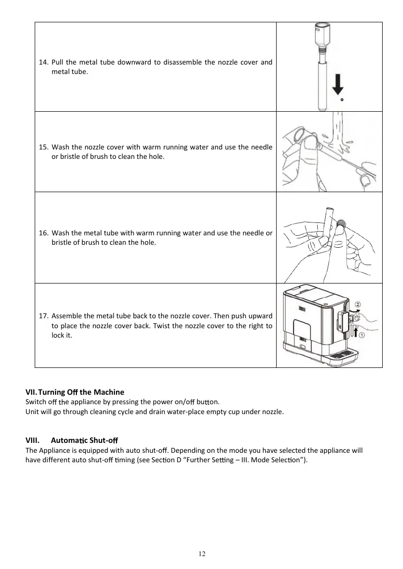 14. Pull the metal tube downward to disassemble the nozzle cover and