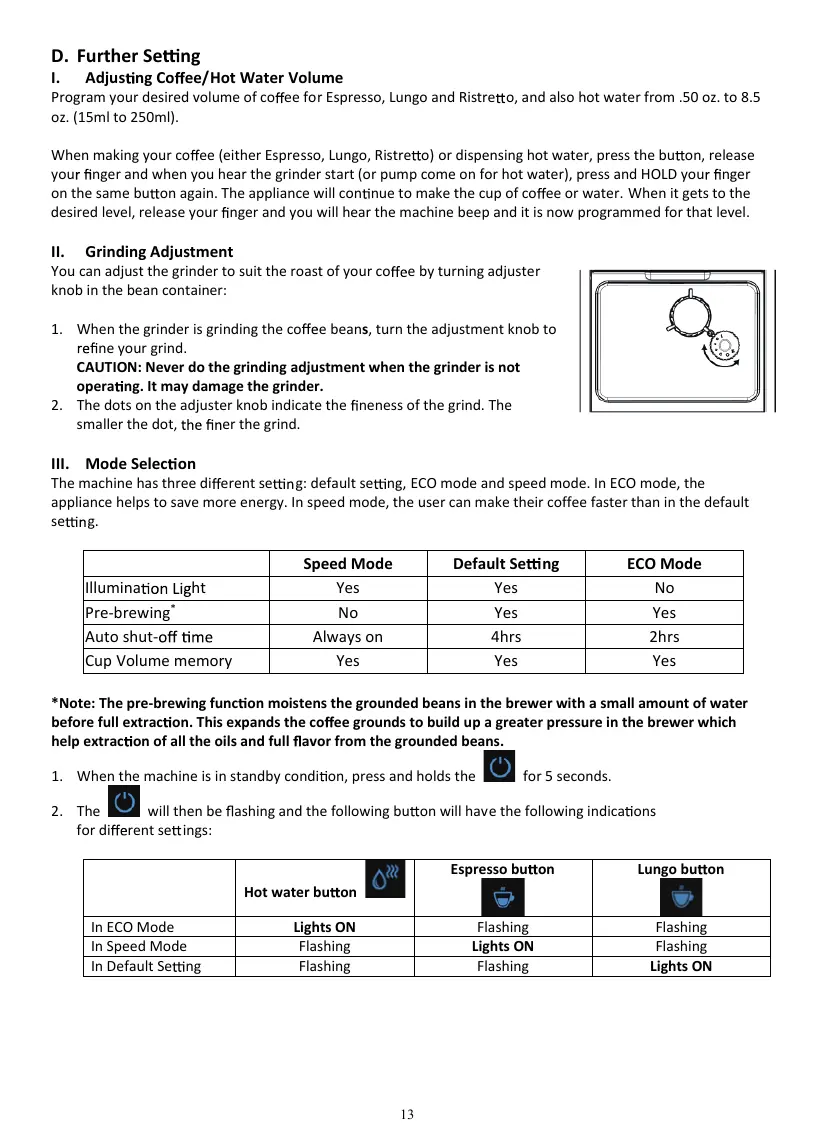 appliance helps to save more energy. In speed mode, the user can make their coffee faster than in the default
