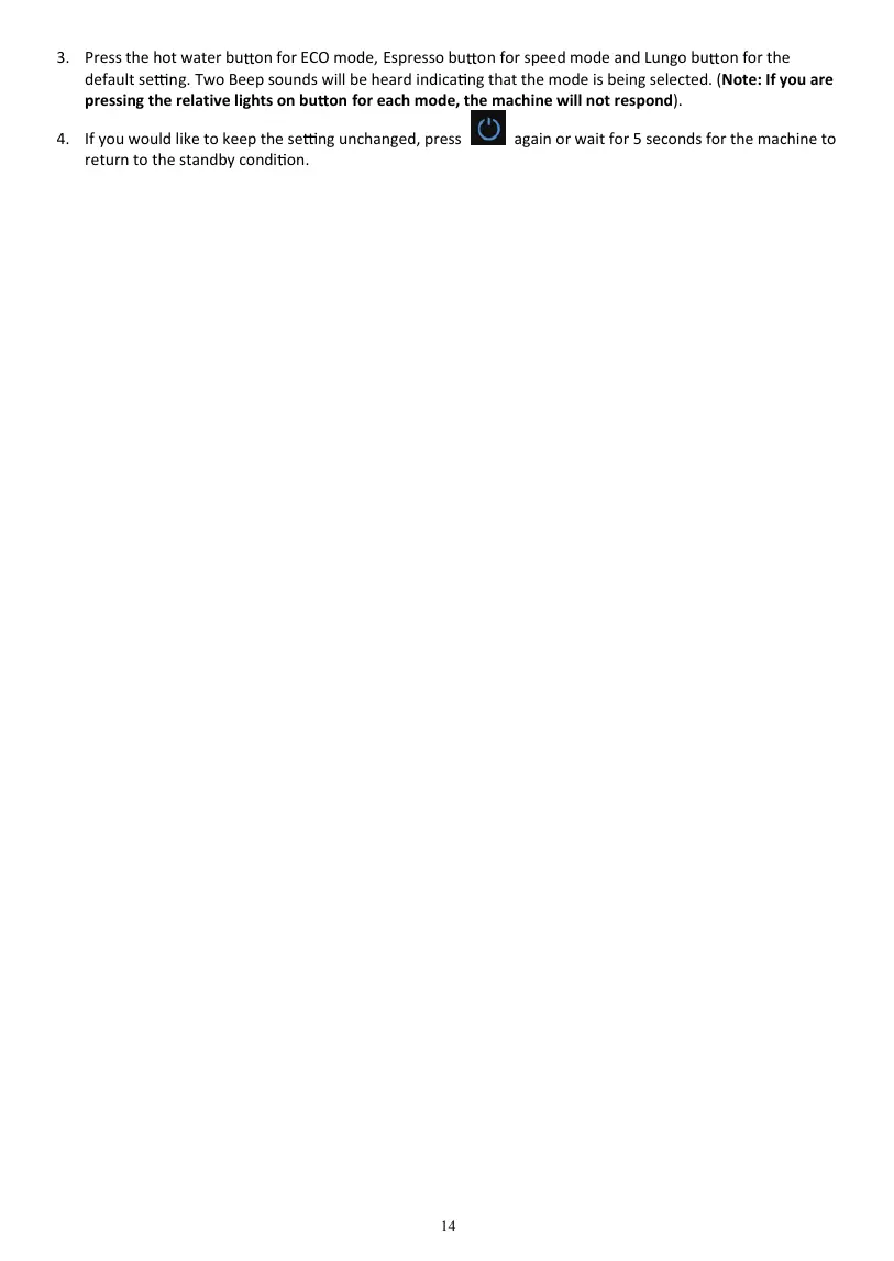 3. Press the hot water bu on for ECO mode, Espresso bu on for speed mode and Lungo bu on for the