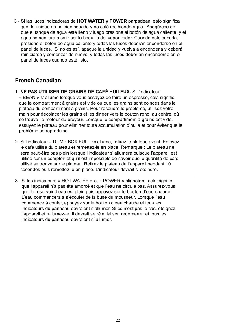 1. NE PAS UTILISER DE GRAINS DE CAFÉ HUILEUX. Si l’indicateur