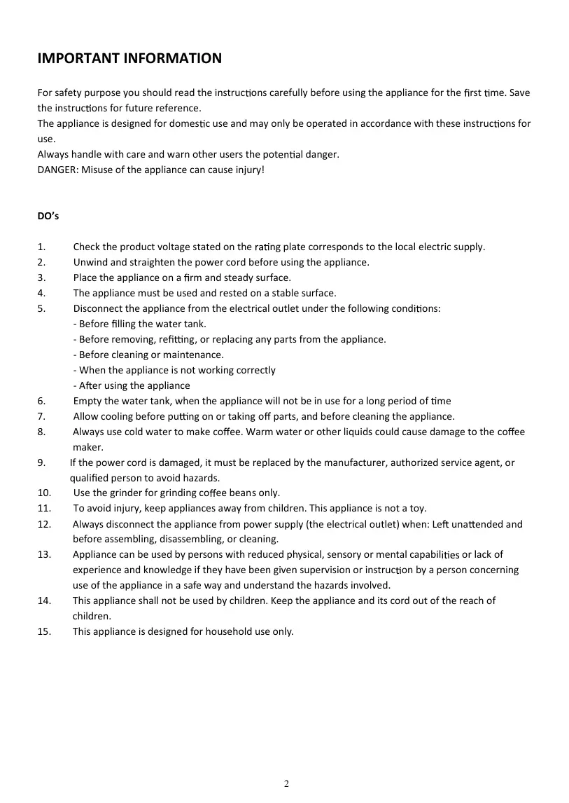 15. This appliance is designed for household use only.