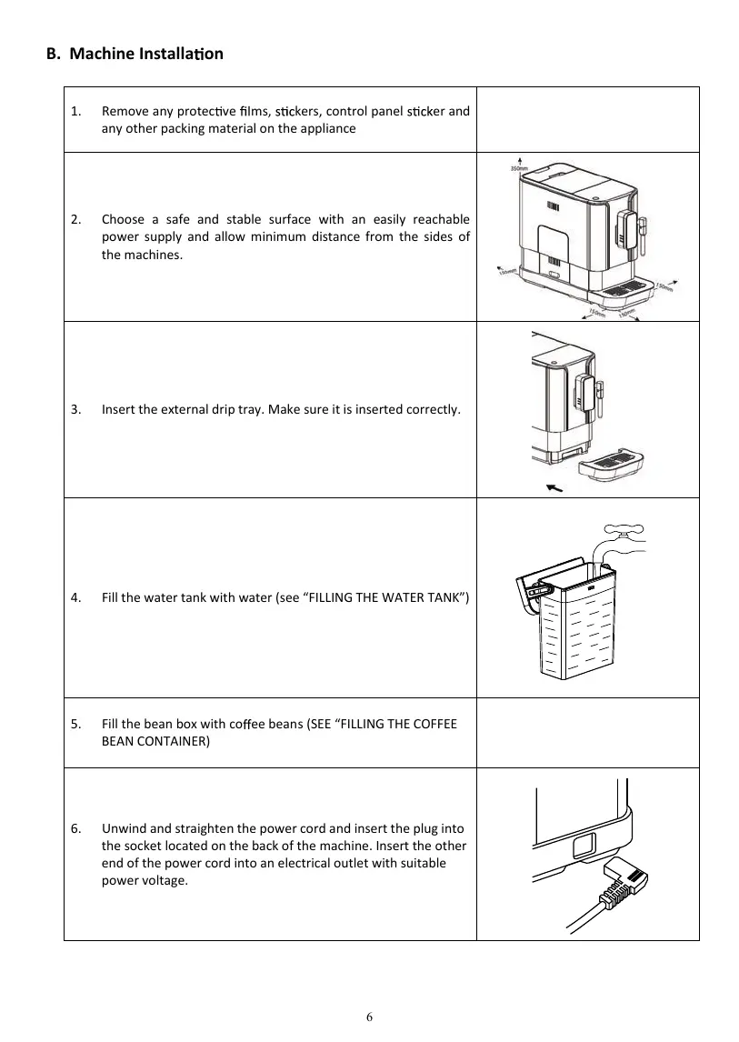 5. Fill the bean box with co ee beans (SEE “FILLING THE COFFEE