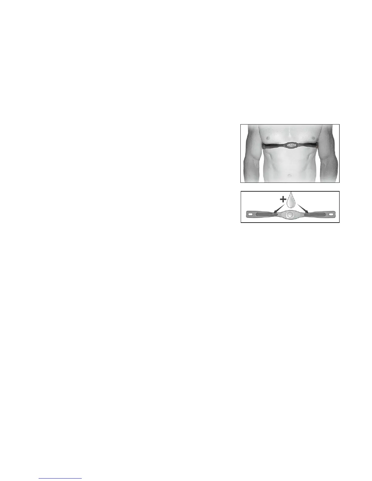 transmitter over a shirt. To do so, wet the areas of the shirt that the electrodes will rest upon.