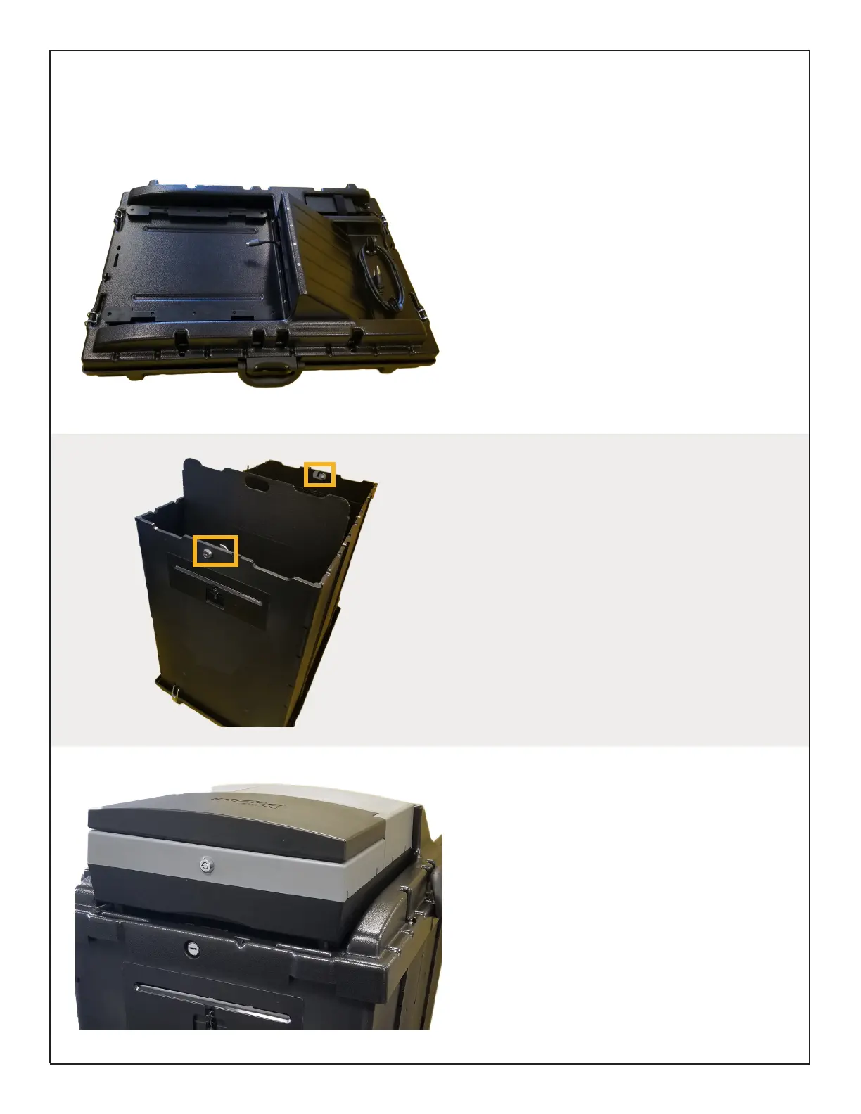 Unlock all four hinges and remove the ballot box